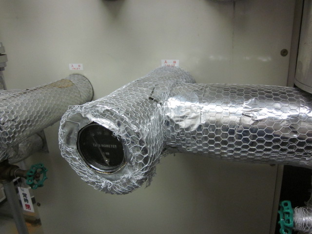 配管保温材交換後③(空調機冷水配管)保温材取付け、試運転確認をして、作業後は良好です。